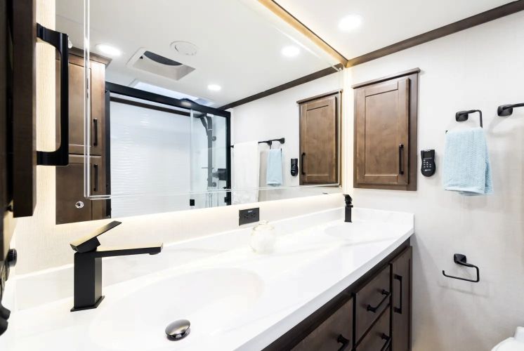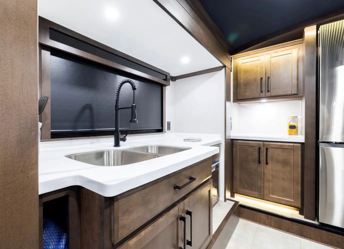 La Riverstone est une roulotte à sellette de luxe qui se distingue par sa qualité supérieure et son attention méticuleuse aux détails. Avec son design spacieux et moderne, elle est conçue pour répondre aux attentes des clients les plus exigeants. Que vous recherchiez un confort exceptionnel, des matériaux de premier choix, ou des finitions élégantes, la Riverstone saura vous offrir une expérience de voyage raffinée et agréable. Ses caractéristiques haut de gamme et son souci du détail en font un choix idéal pour ceux qui ne veulent pas faire de compromis sur la qualité et le style. *L’unité peut différer des options / photo(s) / vidéo 360 affichées